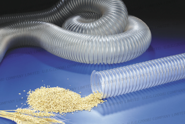 PU Food Grade Flexible Ducting Hose สามารถทนอุณภูมิตั้งแต่ -40 องศา ถึง 90 องศา ผิวด้านในเรียบ ด้านนอกเป็นลอน โค้งงอได้ดี ใช้กับงานที่มีการเคลื่อนไหวได้พอสมควร ทนต่อการเสียดสีได้ดี วัสดุโปร่ง สีใส มองเห็นวัสดุที่วิ่งผ่านด้านใน